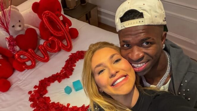 Futbollisti i Real Madridit dhe i kombëtares së Brazilit, Vinicius Junior dhe influencuesja e njohur Virginia Fonseca, e kanë bërë zyrtare lidhjen e tyre përmes një postimi të përbashkët në Instagram. Në imazhin që u bë viral brenda pak minutash, shihet shtrati i zbukuruar me petale trëndafilash dhe balona në formë zemre, duke krijuar një atmosferë romantike që menjëherë tërhoqi vëmendjen e fansave.