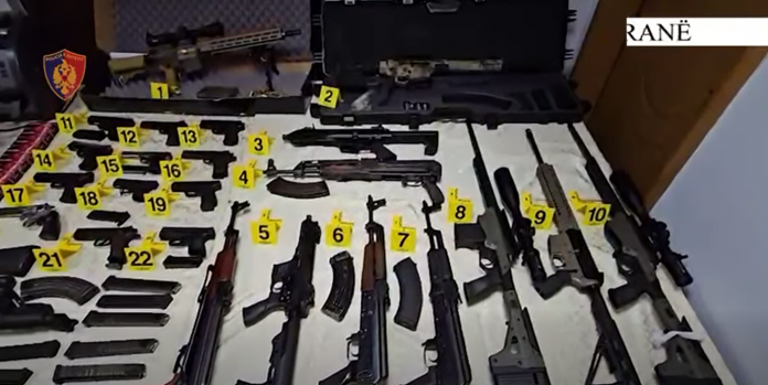 Sipas Policisë, u sekuestruan 23 armë zjarri (5 prej tyre me snajper), 1 silenciator, 17 krehra me municion luftarak, celularë dhe pajisje për shpërthime në distancë, pajisje për bllokimin e valëve, uniforma si të Policisë dhe sende të tjera të kundërligjshme.