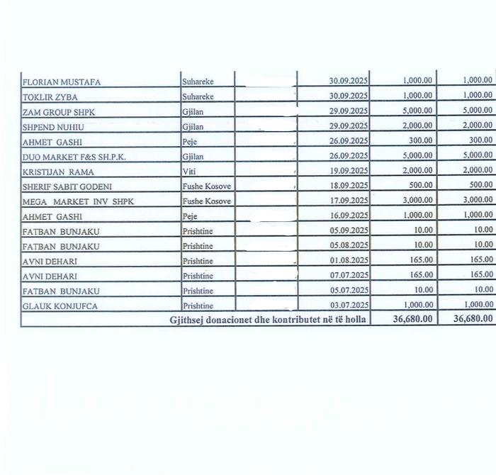 Po ashtu sipas këtij raporti për pesë muaj ka pranuar 36 mijë e 680 euro donacione.